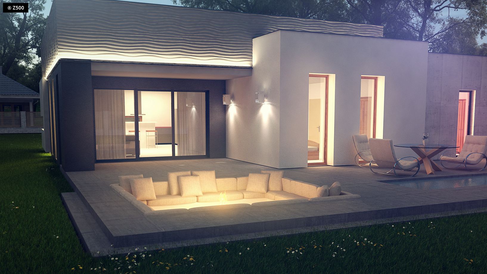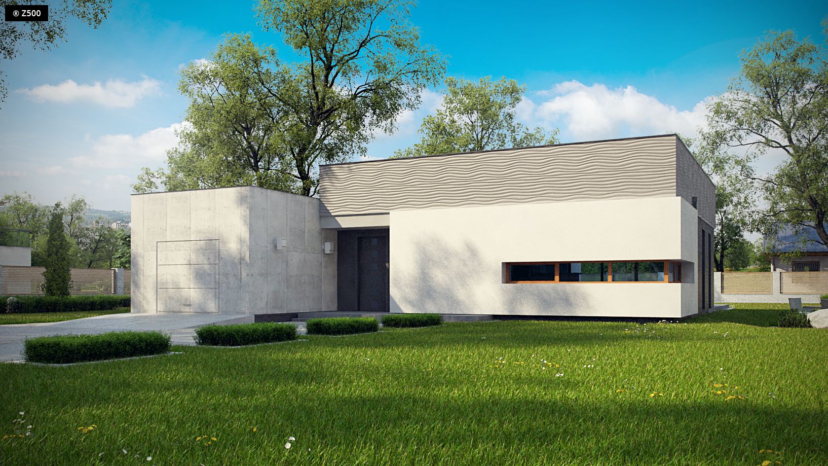 Zx56 to parterowy dom z płaskim dachem. Spośród innych projektów wyróżnia się połączeniem jednobarwnych, prostych kubicznych brył. Dom posiada obszerny salon połączony z jadalnią, kuchnią oraz spiżarką. Bezpośrednio do domu przylega garaż jednostanowiskowy z wejściem do domu. W części nocnej domu znajdują się trzy sypialnie. Największy pokój posiada oddzielną łazienkę i garderobę.