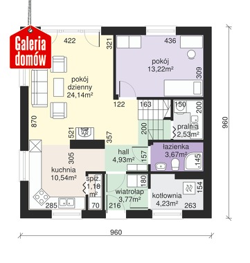Projektując domy myślimy o ludzkich potrzebach. Staramy się wprowadzać w życie tylko takie rozwiązania, które mogą poprawić jakość życia w nowej przestrzeni własnego lokum. Dwunasta wersja serii Przy Cyprysowej, poza walorami estetycznymi, obfituje w ciekawe udogodnienia pozwalające myśleć o tym projekcie w kategoriach pro-familijnych. Obszerny salon otwarty na kuchnię łączy w jednym miejscu większość dziennych czynności. Oglądamy telewizor, odrabiamy z dzieckiem lekcje, gotujemy, czy grzejemy się przy kominku razem spędzając czas, którym dysponujemy po powrocie z pracy. Parter zaplanowaliśmy tak, by spełniał funkcję kompletnego mieszkania. Bezspornym atutem w tym wypadku jest dodatkowy pokój i pełnowymiarowa łazienka, które pozwalają prowadzić budowę dwuetapowo. Wprowadzamy się na dół i mieszkamy komfortowo jeszcze szybciej, a poddasze „przejmujemy” w miarę możliwości finansowych. Ciekawie zostały rozwiązane również pomieszczenia uzupełniające – pralnia i spiżarka. Pod schodami mamy do dyspozycji pralnię wysoką na 2 metry, a „przytulona” do kuchni spiżarnia pozwala schować nierozpakowane zakupy, czy rzadziej używane sprzęty AGD. Piętro, dzięki nowoczesnej architekturze okiennej i połaciowym przeszkleniom jest doskonale doświetlone na całej powierzchni. Dwa balkony pozwalają z dowolnego pokoju wyjść na świeże powietrze i cieszyć się widokiem porannej jutrzenki i zachodzącego słońca. Cyprysowa 12 ma zwartą bryłę i kompaktową konstrukcję, której podstawą jest kwadrat. Doskonale adaptuje się zarówno na wąskie działki, jak i obszerniejsze parcele. Jeśli myślimy o domu, który ma mieć przyjazny, rodzinny charakter, a na dodatek spełniać wszystkie cechy nowoczesnego, precyzyjnie zaplanowanego budynku, Cyprysowa 12 to doskonały wybór.