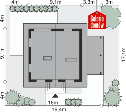 Dach: dwuspadowy, nachylenie 40°, pokrycie z dachówki ceramicznej lub betonowej