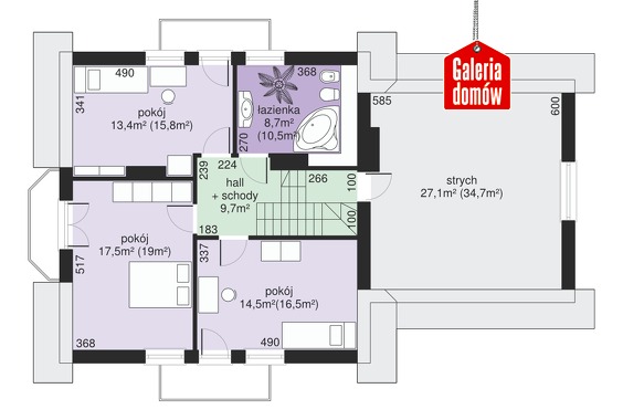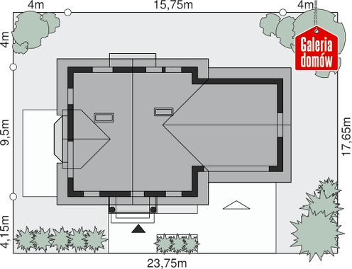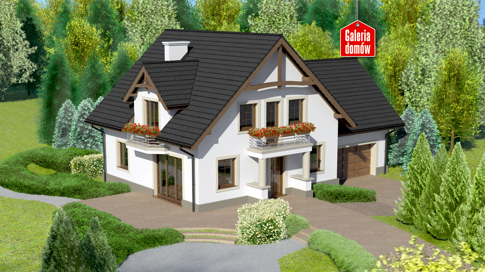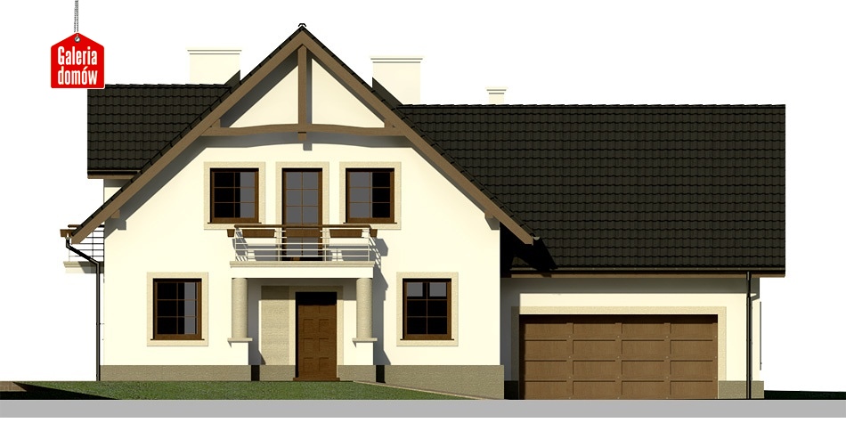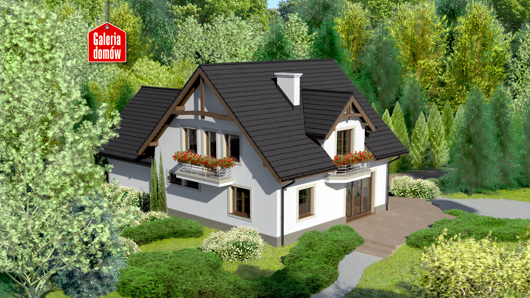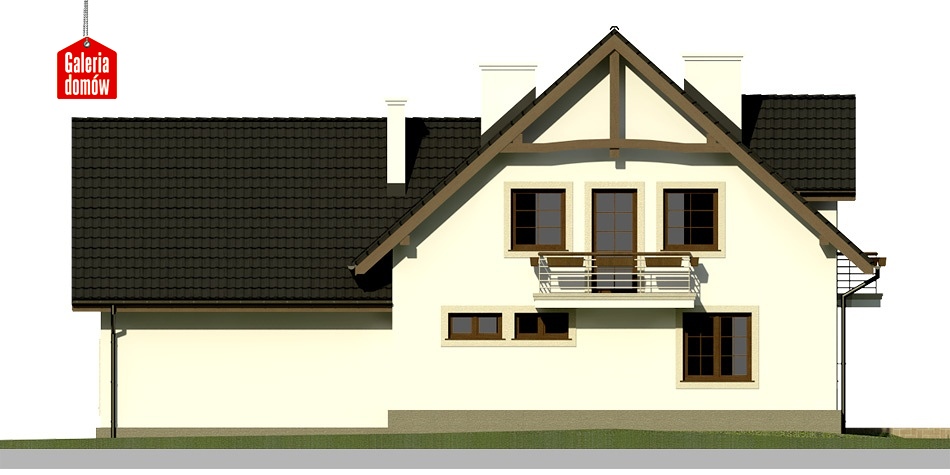 Dach: dwuspadowy, nachylenie 42°, pokrycie z dachówki ceramicznej lub betonowej