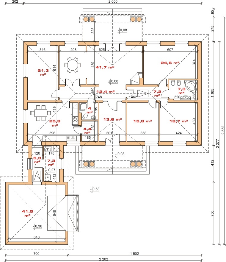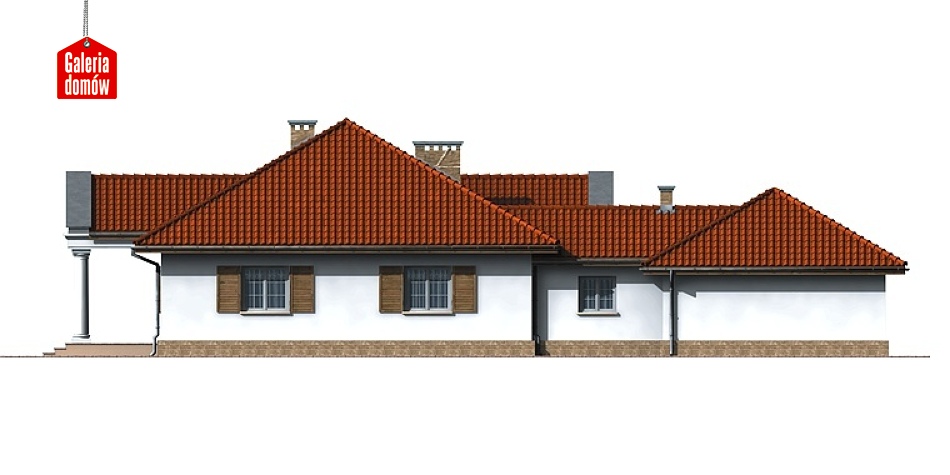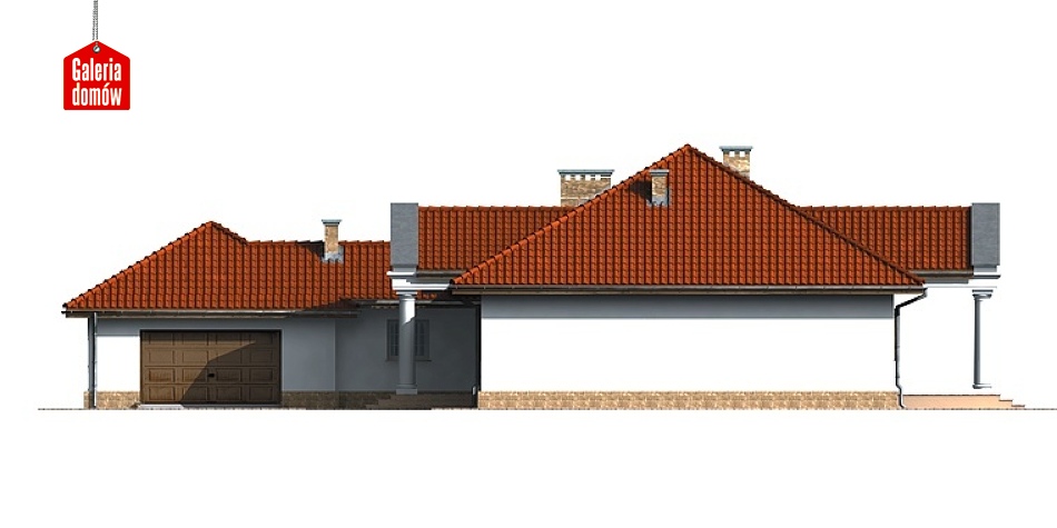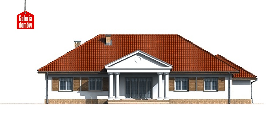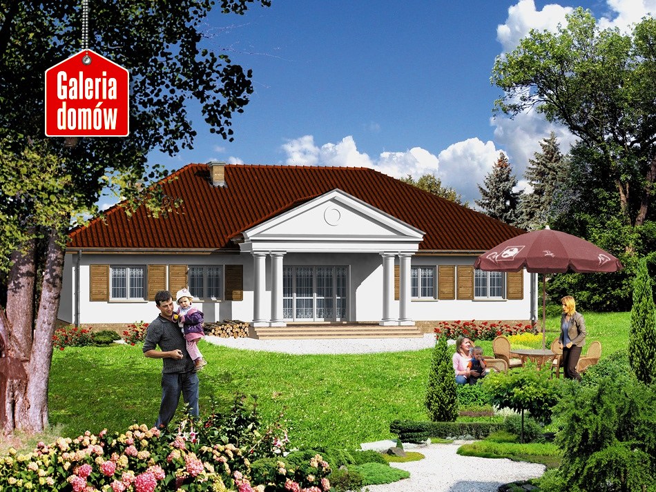 Projekt gotowy Dom przy Jodłowej prezentuje wygodny i przestronny dom parterowy, architekturą nawiązujący do tradycji dworu polskiego. Układ pomieszczeń pozwala na dogodną i dowolną aranżację wnętrz. Pomieszczenia techniczne z dwustanowiskowym garażem ulokowano w oddzielnym skrzydle.