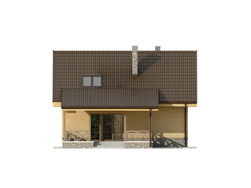 Jednorodzinny dom mieszkalny, parterowy z użytkowym poddaszem, niepodpiwniczony. Budynek zaprojektowano w technologii szkieletu drewnianego, wykończonego szalówką. Całość została ujęta w prostej, klasycznej bryle, przykrytej dwuspadowym dachem. Dom zawiera optymalny program dla 4-osobowej rodziny. Na parterze przewidziano dodatkowy pokój. Atutem projektu jest duży zadaszony taras oraz spora kotłownia.