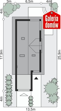 Dach: dwuspadowy, nachylenie 40°, pokrycie z dachówki ceramicznej lub betonowej