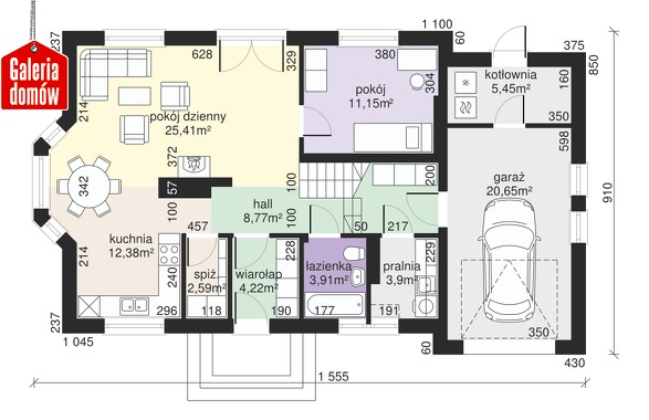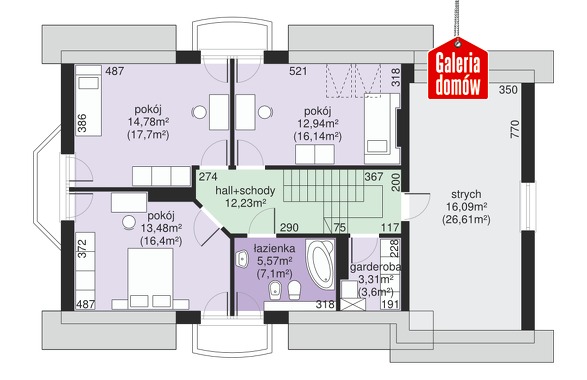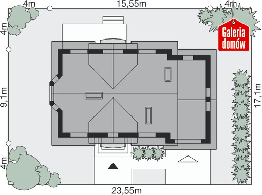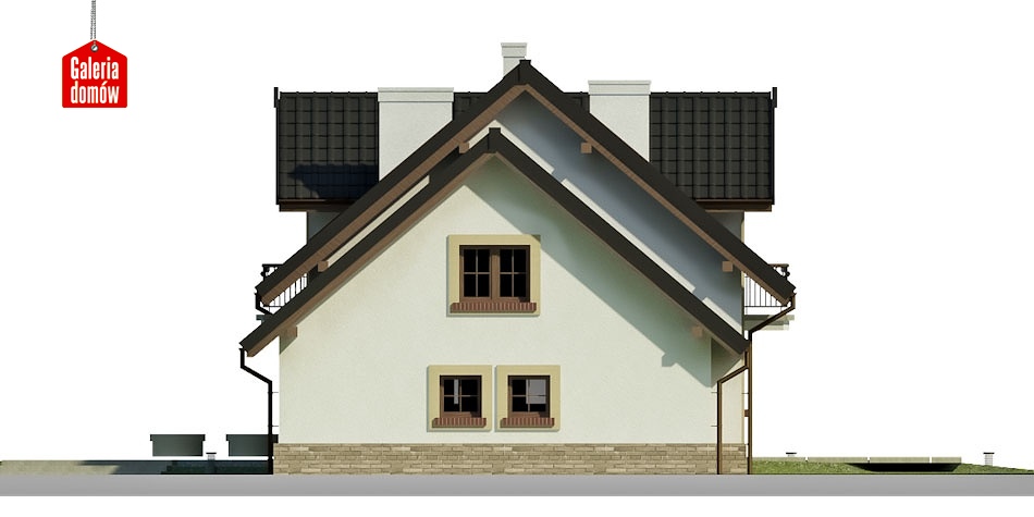 Dach: dwuspadowy, nachylenie 40°, pokrycie z dachówki ceramicznej lub betonowej