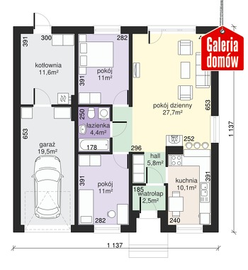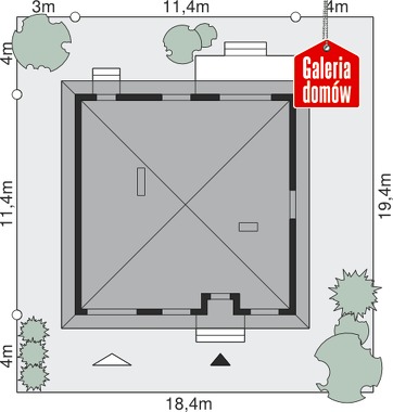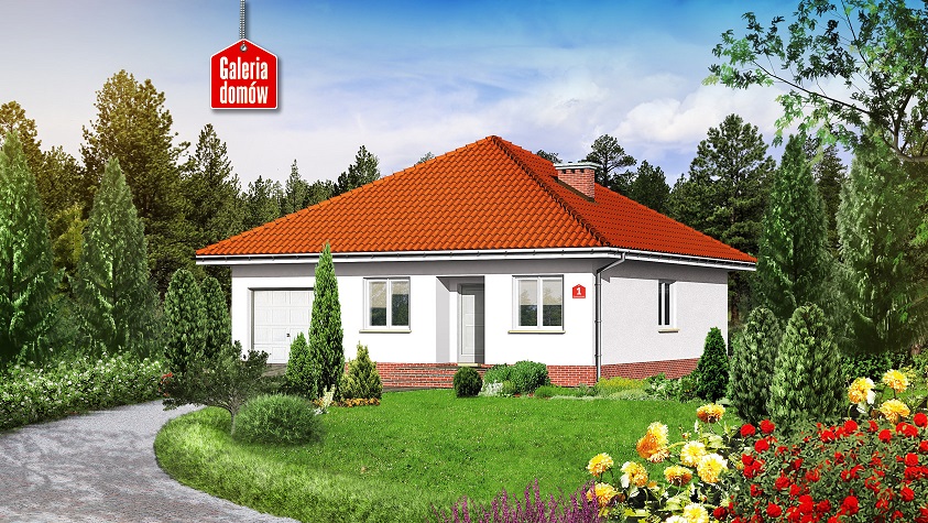 Mały dom parterowy z kopertowym dachem. Przeznaczony dla trzy- lub czteroosobowej rodziny. Nieskomplikowany układ pomieszczeń sprawia, że dom jest bardzo funkcjonalny i wygodny w użytkowaniu. Stonowana kolorystyka doskonale podkreśla spokojny charakter domu. Program użytkowy obejmuje duży pokój dzienny z wyjściem do ogrodu, otwartą kuchnię, dwie sypialnie i łazienkę. Dom posiada również garaż jednostanowiskowy i pomieszczenie gospodarcze z kotłownią.