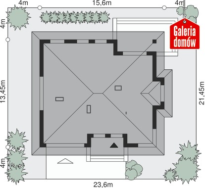 Dach: wielospadowy, nachylenie 25°, pokrycie z dachówki ceramicznej lub betonowej