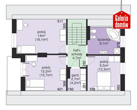 Dach: dwuspadowy, nachylenie 40°, pokrycie z dachówki ceramicznej lub betonowej