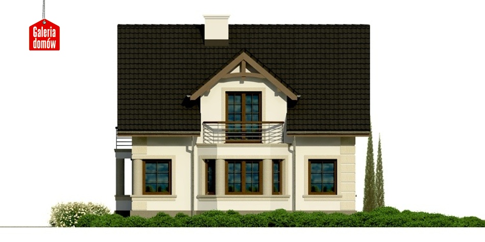 Co się dzieje, kiedy tradycja spotyka się z nowoczesnością? Dzieje się wiele, bo to spotkanie zawsze jest bardzo ożywcze. Z zewnątrz klasyczna bryła, ozdobne kolumny i "kraciasta" elegancja okiennic, bramy garażowej i drzwi wejściowych, w środku nowoczesny salon z otwartą kuchnią, dwie łazienki, gabinet, cztery pokoje i garaż. Biel ścian i czerń dachu przełamana ciepłym drewnem. Modnie, stylowo, z fasonem! Nie ma jednego wymiaru, możesz być kim chcesz – na zewnątrz grzecznie i klasycznie, w środku – ekstrawagancko, jak tylko zapragniesz...