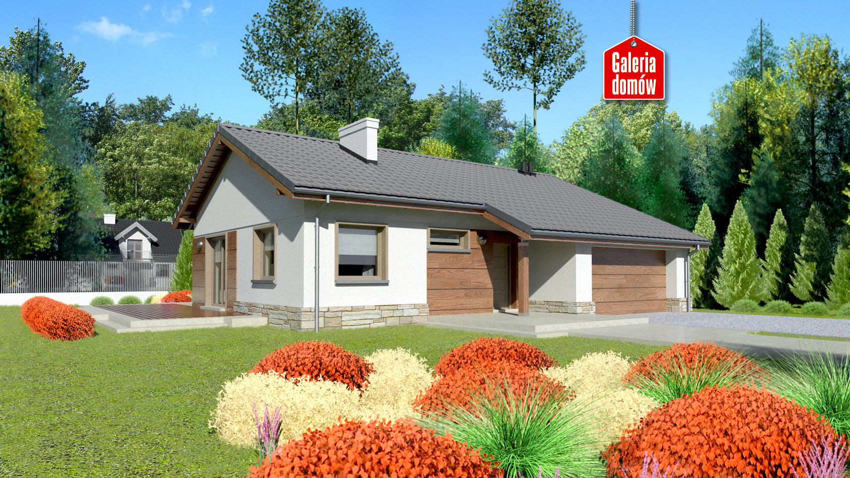 Możesz zrobić pierwszy krok w stronę samodzielności. Mali ludzie może też zrobią tu pierwsze kroki. Razem wejdziecie w nowy etap i zrobicie kolejne, już nie pod górę. Planowanie przyszłości w tym parterowym domu to przyjemność. To prawda, że czasem trudno znać wszystkie potrzeby z wyprzedzeniem. I prawda, że projektowanie własnej przyszłości zawsze jest wyzwaniem. Twoje wyzwania wrysowaliśmy w gotowy projekt. Kilka naszych pomysłów: garaż na dwa samochody (nie szkodzi, że na razie masz tylko jeden), naturalne materiały na zewnątrz. Tu się odnajdziesz. Krok po kroku!