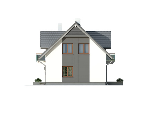 Dach: dwuspadowy, nachylenie 43°, pokrycie z dachówki ceramicznej