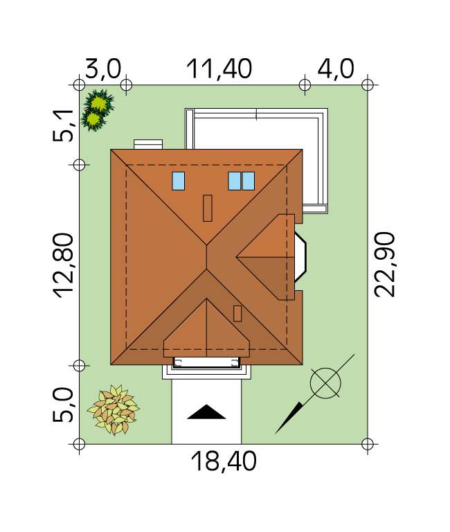 Dach: wielospadowy, nachylenie 40°, pokrycie z dachówki