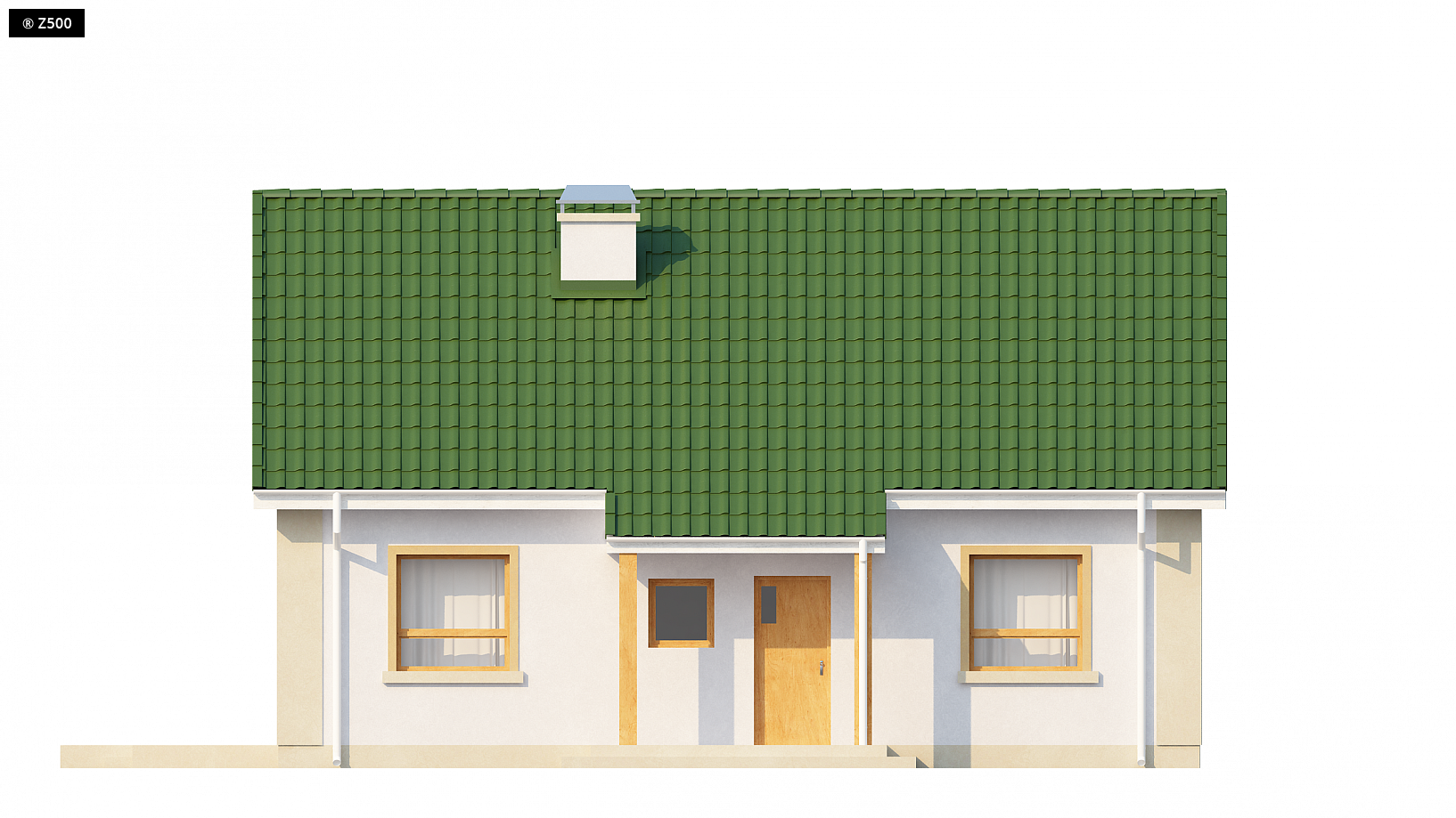 Wariant podstawowy z12 w technologii szkieletowej. Z12 D to zgrabny dom parterowy z opcją zagospodarowania poddasza. Prosta bryła oraz możliwością etapowania inwestycji czynią go tanią i ekonomiczną inwestycją. Konstrukcja oparta na ścianach zewnętrznych pozwala na dowolne kształtowanie wnętrza ściankami działowymi.Układ funkcjonalny zaplanowano na rzucie prostokąta. W sieni przewidziano miejsce na dużą szafę. Zlokalizowany niemal w środku hol wydziela strefy - dzienną w lewej części domu oraz mniejszą, nocną z dwiema sypialniami i łazienką. Pokój dzienny połączono z jadalnią oraz kuchnią. Przy wiatrołapie zaprojektowano spore pomieszczenie gospodarcze, które może być dostępne także z kuchni. Pozwoli to optymalnie zorganizować przestrzeń. Jeden centralnie umieszczony komin wpłynie na obniżenie kosztów i pozwali uprościć wykonanie nowoczesnych instalacji systemu ogrzewania kominkiem lub wykonanie płaszcza wodnego. Z12 to niezwykle uroczy i przyjemny w wyglądzie dom o dużych możliwościach aranżacji.