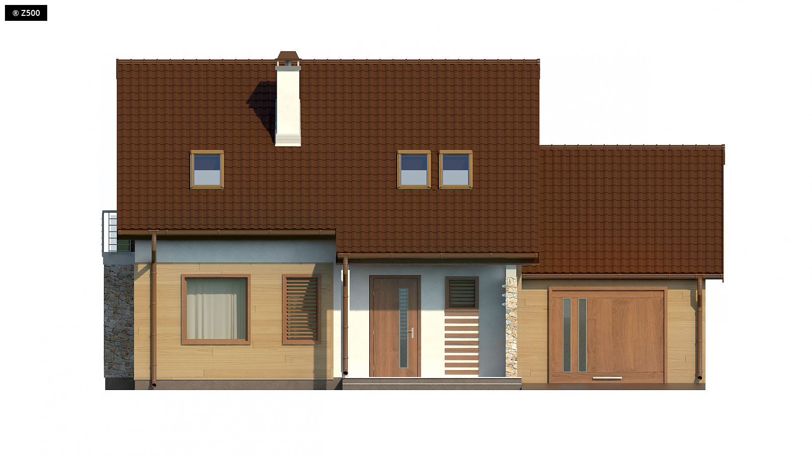 Projekt Z102 to projekt funkcjonalnego i taniego w budowie domu.Prosta konstrukcja oraz dach dwuspadowy pozwoli zaoszczędzić pieniądze. Wnętrze domu to część dzienna: duży i jasny salon, jadalnia oraz kuchnia, komunikacja oraz część do pracy i wypoczynku domowników. W dużej sieni można wydzielić ścianką odrębną garderobę bądź wstawić pojemną szafę na kurtki, płaszcze i buty. Spokojnie można umieścić wygodny fotel oraz duże lustro aby zapewnić sobie komfort ubierania. Kominek ustawiony w sercu domu jest widoczny z każdego miejsca w salonie jak i z jadalni. Kuchnia otwiera się na salon, łącząc obie przestrzenie. Na parterze znajduje się dodatkowy pokój, który może służyć jako pokój gościnny bądź gabinet do pracy oraz garaż z którego można przejść bezpośrednio do domu. Poddasze to strefa nocna dla mieszkańców, gdzie znajdują się 3 wygodne sypialnie oraz rodzinna łazienka z pralnią. W domu z102 życie kwitnie w jego wnętrzu jak i na zewnątrz, w pięknie urządzonym ogrodzie. Tras od strony salonu jest zadaszony wysuniętym fragmentem dachu, gdzie można urządzać grillowe imprezki w każdą pogodę.