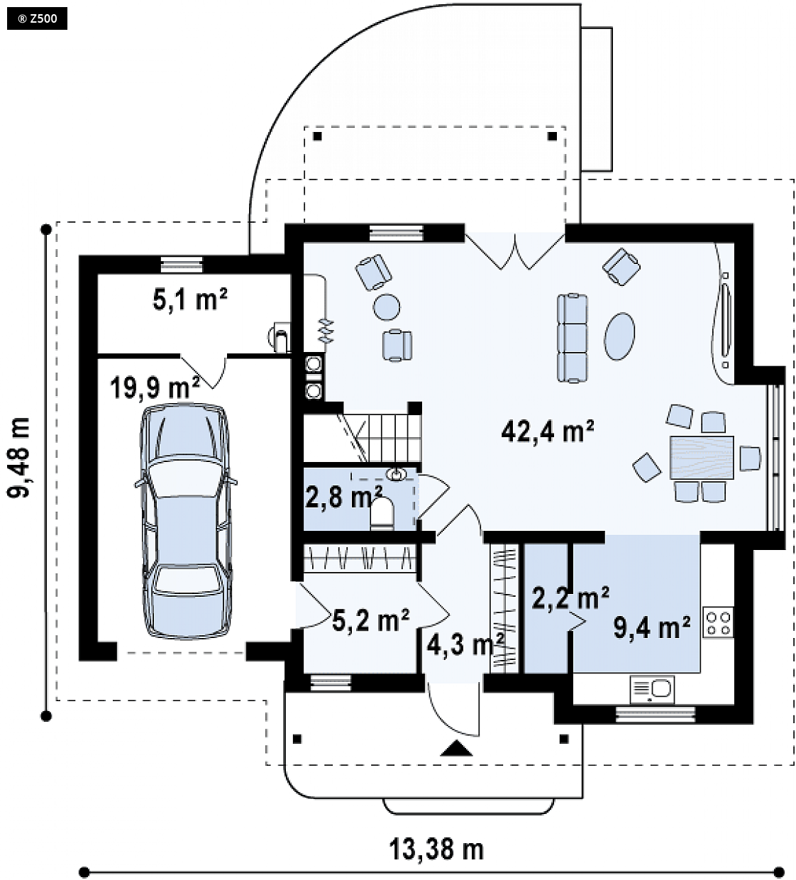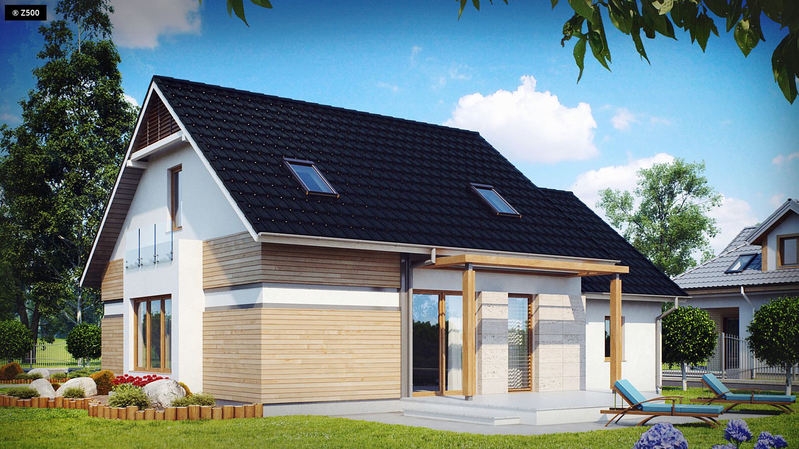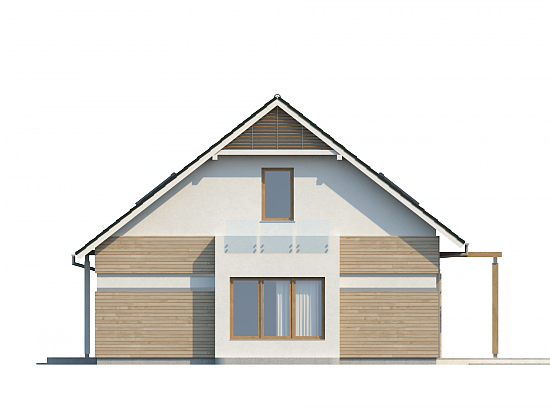 Z 114 to przytulny i komfortowy dom z garażem. Modna, ciemna dachówka świetnie podkreśla jego nowoczesny charakter, a drewniane elementy elewacji dodają uroku. Znaczna część parteru to jasny, przestronny salon. Można w nim wyznaczyć trzy osobne strefy do wypoczynku: wygodną jadalnię, komfortową część telewizyjną oraz romantyczny zakątek z kominkiem. Salon posiada bezpośrednie wyjście tarasowe, z którego podziwiać można kwitnący ogród. Funkcjonalnie zaplanowana kuchnia wyposażona została w podręczny schowek. Na parterze jest także pojemna garderoba z bezpośrednim przejściem do garażu. Na piętrze znajdują się trzy wygodne sypialnie oraz duża ogólnodostępna łazienka. Jest tu również spora garderoba z miejscem na ubrania wszystkich domowników. Przestrzeń nad garażem to dodatkowe miejsce do dowolnego wykorzystania. Z114 to dom niezwykle uroczy i przyjazny w wyglądzie. Świetnie nadaje się zarówno dla młodych ludzi, jak i dla rodziny z dziećmi.