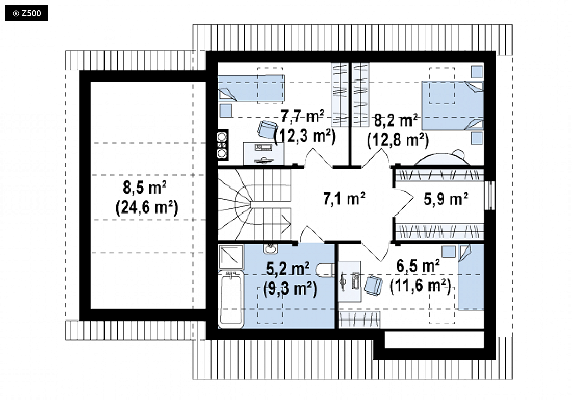 Dach: dwuspadowy, nachylenie 38°, pokrycie z dachówki, blachodachówki