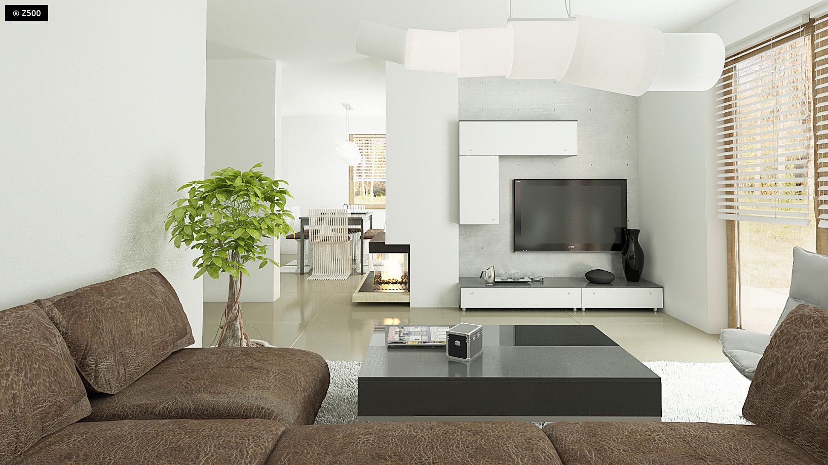 Z163 to mały i funkcjonalny dom z dwuspadowym dachem. Prosta bryłę urozmaica zgrabny wykusz od strony ogrodu oraz lukarna nad wejściem. Ciekawe elementy wykończenia elewacji oraz forma zadaszenia nadają mu elegancji i nowoczesnego stylu. Parter to przestronna część dzienna wyraźnie podzielona na 3 strefy - spora kuchnia ze spiżarką, przestronna jadalnia z wyjściem na zadaszony taras oraz wygodny salon z centralnie ulokowanym kominkiem. Pod schodami znajduje się wc, a pojemna szafa w sieni pomieści odzież wierzchnią oraz obuwie domowników. Na poddaszu znajdują się trzy pokoje. Dwie niemal bliźniacze sypialnie posiadają podobna powierzchnię. Nieco większa jest główna sypialnia rodziców zaprojektowana z wykuszem i wygodnym wyjściem na balkon. Ogólnodostępną łazienkę doświetla nowoczesne w formie, trójkątne okno. Z163 to kompaktowy dom, idealny dla 3-4 osobowej rodziny. Jego funkcjonalność, prosta bryła ubrana w nowoczesne dodatki z pewnością urzeknie wielu inwestorów.