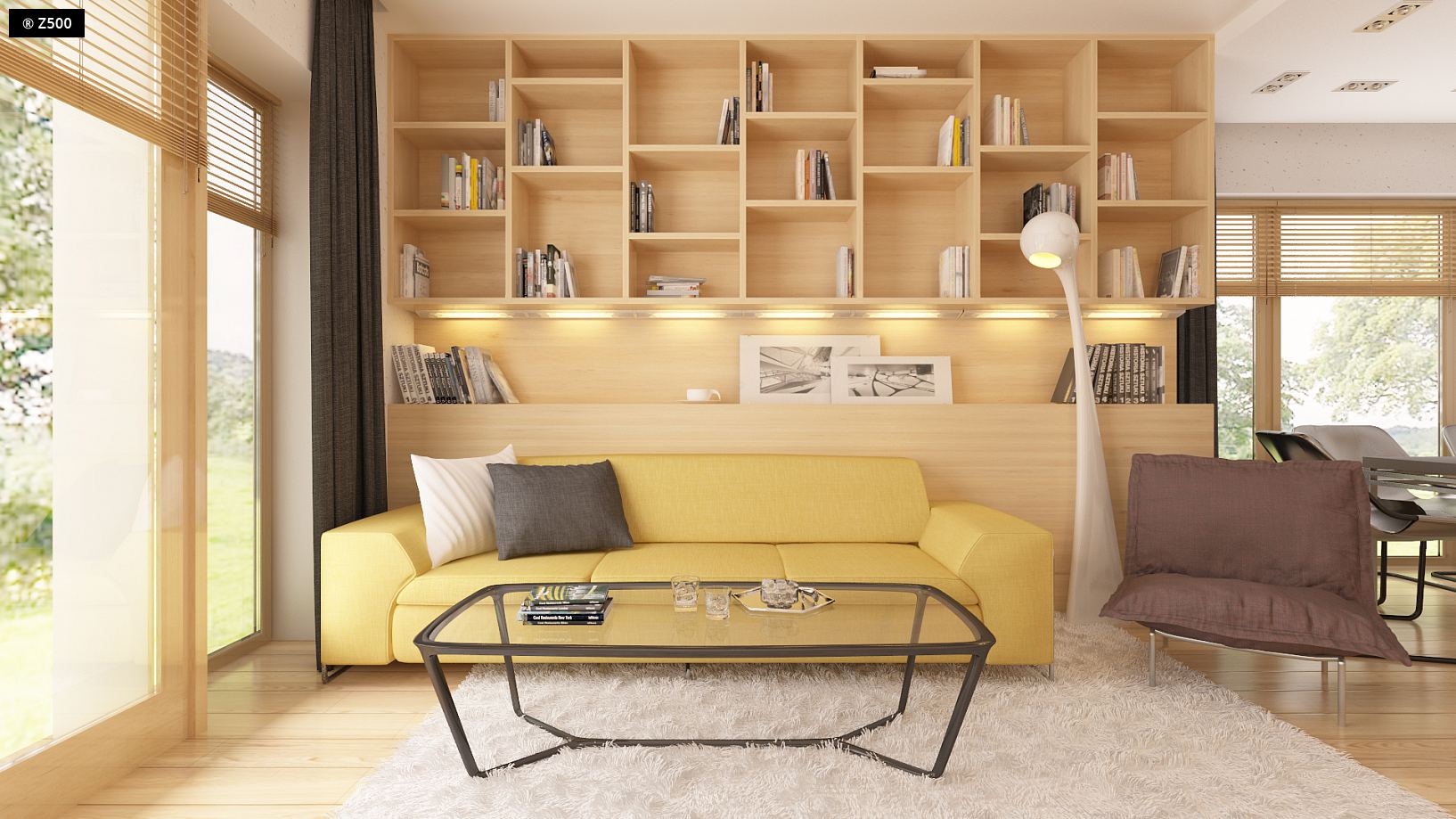 Wnętrze domu jest podzielone na dwie części: dzienną i nocną. Strefę dzienną tworzy przestronny salon z dużymi przeszkleniami, i jadalnia. Stąd jest także bezpośrednie przejście do kuchni, która może zostać oddzielona od salonu za pomocą suwanych drzwi. Lewa część domu to strefa nocna. Znajduje się tu łazienka i trzy sypialnie, w tym jedna z prywatnym wyjściem na zadaszony taras. Dodatkowym atutem jest bezpośredni dostęp z domu do dwustanowiskowego garażu. W holu przewidziane zostało miejsce na schody klapowe na strych. Dom Z200 można ogrzewać na wiele sposobów począwszy od nowoczesnych ekokominków na pelety, jak również węglem czy gazem. Pozwala na to pomieszczenie gospodarcze dostępne z garażu.