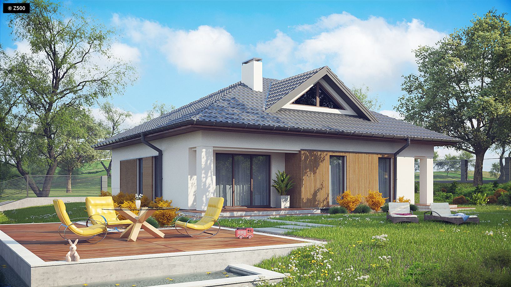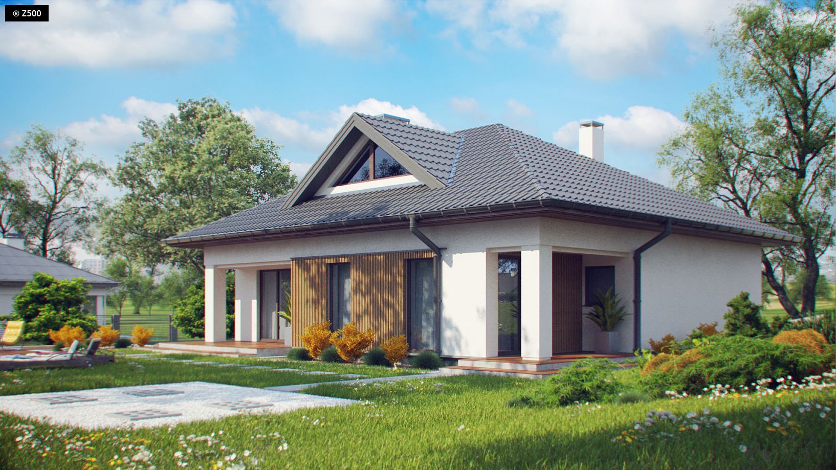 Z230 to praktyczny i bardzo przestrony dom z możliwością zaadoptowania poddasz. Bryła ujmuje swą dokładnością i dbałością o detale. Zgrabny wykusz i delikatny podcień podkreślają przytulny wyraz domu. Zaletą tego domu jest wydzielenie niezależnych stref: dziennej i nocnej. Duży, jasny salon będzie ulubionym miejscem odpoczynku wszystkich domowników, posiada bezpośrednie wyjście na taras. Kuchnia zaprojektowana w kompozycji otwartej dodatkowo została wzbogacona o spiżarkę. Strefa nocna to trzy przestronne sypialnie, ogólnodostępna garderoba oraz duża łazienka, która pomieści wannę i prysznic.