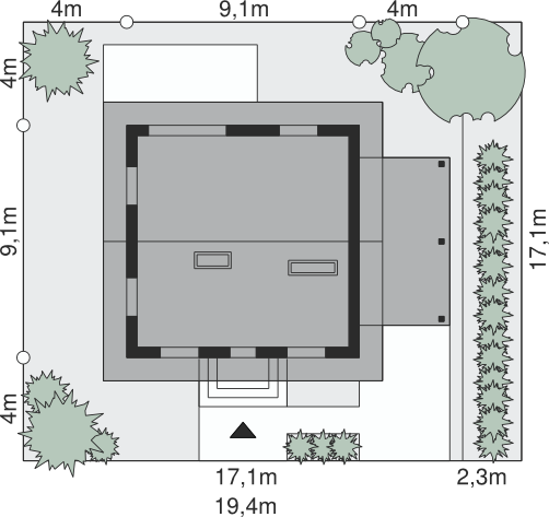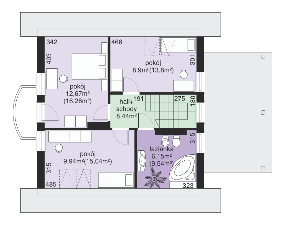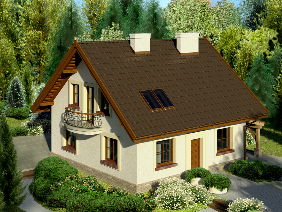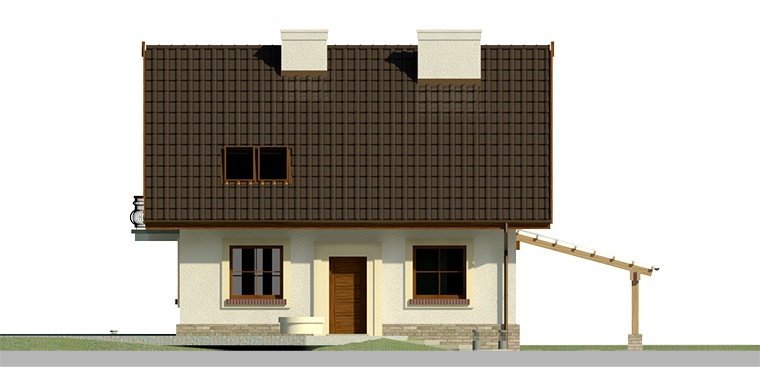 Dach: dwuspadowy, nachylenie 40°, pokrycie z dachówki ceramicznej lub cementowej