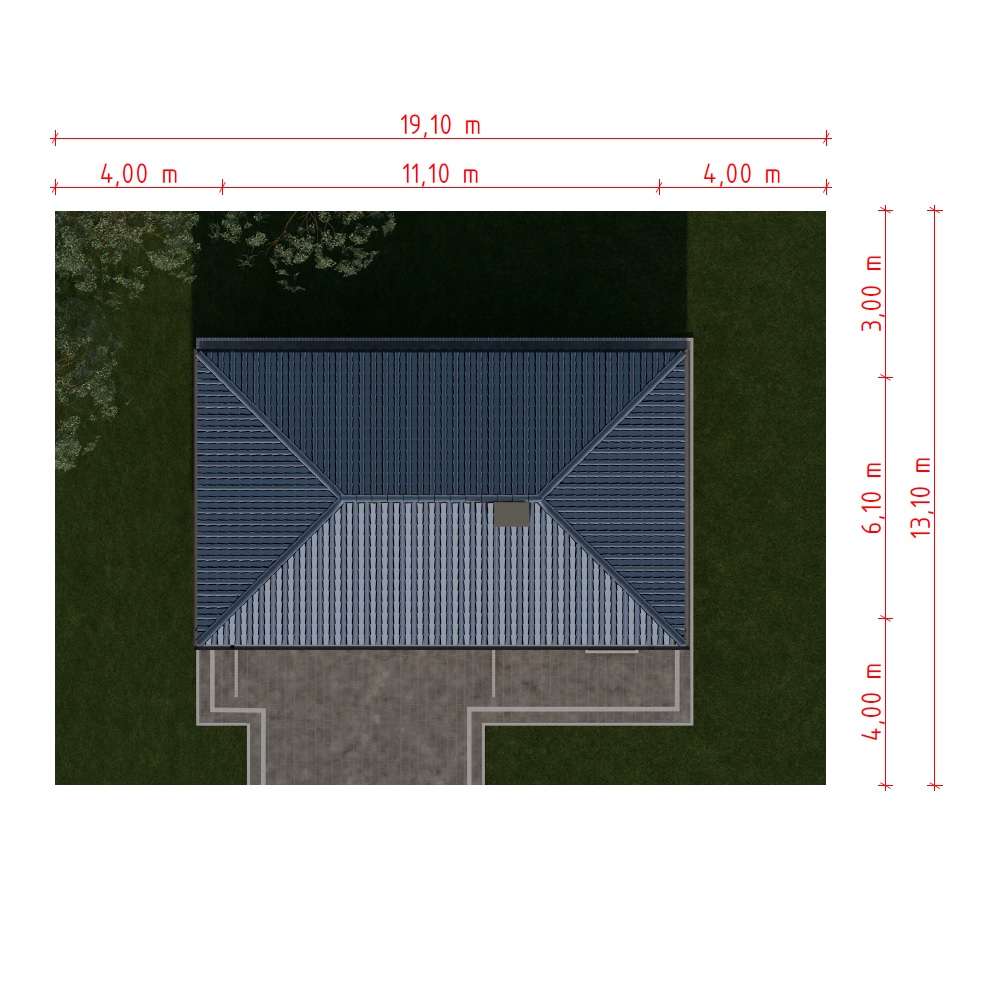 Dach: czterospadowy, nachylenie 30º, pokrycie z dachówki ceramicznej