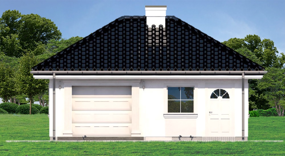 Dach: czterospadowy, nachylenie 30º, pokrycie z dachówki ceramicznej