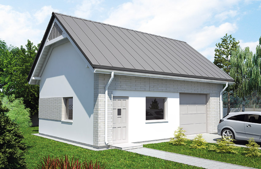 Dach: dwuspadowy, nachylenie 38º, pokrycie z blachy płaskiej